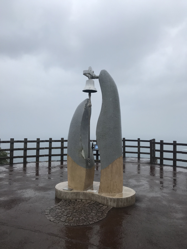 위에서가 아니라 앞에서 몰아치는 비를 우산 하나와 맞서서 올라갔던 전망대에는 사람이 아니라 다른 생명체 하나의 기척도 느낄 수 없을 정도로 비와 바람만 가득했네요. 그래도 기대감에 올라간 전망대인데, 소원을 빌라는 종은 수리한다고 치면 안 된다고 그러고.... 그래서 안내판의 설명을 잘 떠올리며 바라본 십자가는..........