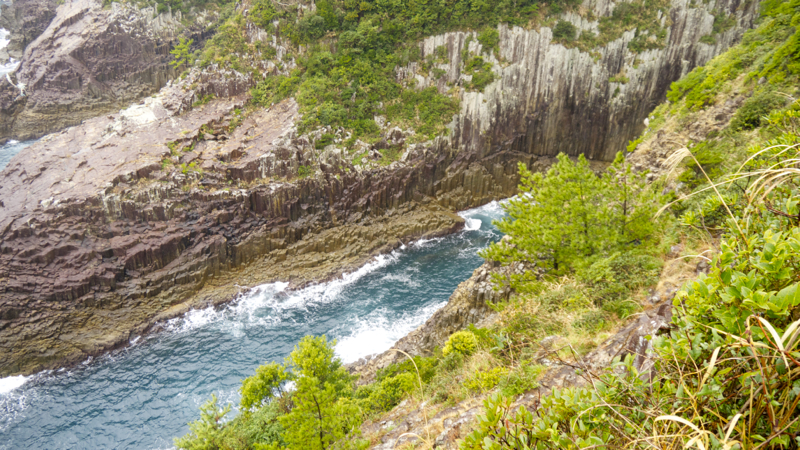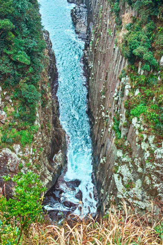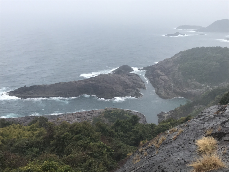 그러니까 바로 목적지인 우마가세(馬ヶ背)가 나오더군요. 주상절리라고 하나요. 가파른 절벽과도 같은 육지 사이로 물길이 나 있는.... 그러면서 그 물길 끝자락에는 저 멀리 America 대륙과 함께하는 태평양이 보이더군요. 하얗게 부서지는 파도를 보다 보니 비도 오고 좀 춥다는 생각도 들고 말이죠... 그래도 참 자연의 힘으로 기괴한 절경이...