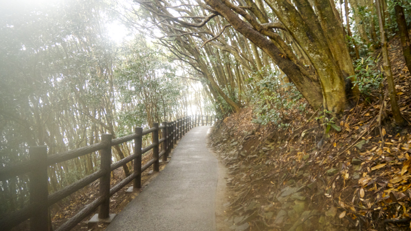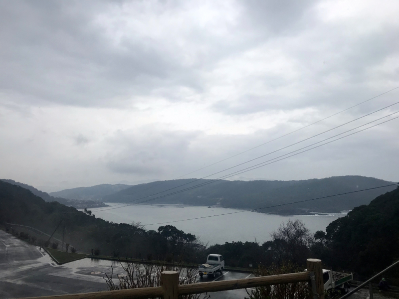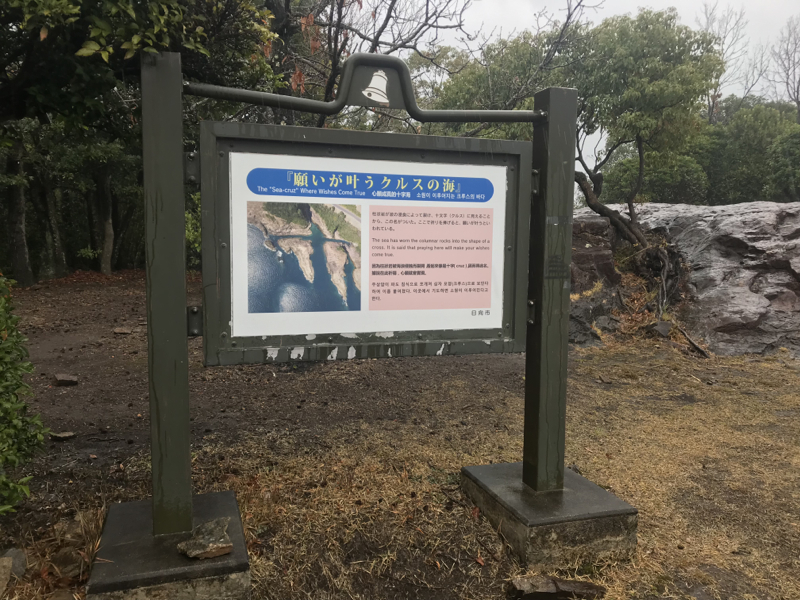 타카치호 협곡(高千穂峡)에서 비 맞아가면서 노 저어가며 절경을 감상하고 나서는 잠시 숨을 돌리고는 다음 목적지로 이동! 타카치호로 들어갈 때 봤던 구름을 옆구리에 끼고 있는 쭉쭉 솟아오른 산들 사이로 그만큼 더 깊이 파내려간 협곡 옆을 따라 난 길을 가거나 또는 협곡 위로 난 아찔한 다리들을 달리며 다시금 큐슈섬의 동쪽 해안 도시인 휴가시로. 여전히 비가 강하게 내리다가 잦아들었다가 하는데, 1시간 쯤 달리니 휴가시 시내에 도착. 평일 낮인데다가 비까지 오니 거리엔 사람이나 차는 거의 보이지 않았고, 그렇게 시내를 가로질러 목적지인 우마가세(馬ヶ背)에 도착. 주인장의 고향인 부산 해운대 자락의 바닷길을 가다가 달맞이 고개를 올라가는 느낌 비슷하게, 시내를 지나면 나오는 부두/해안길을 따라 조금 지나면 언덕 정상 쯤에 있는 주차장에 차를 일단 주차.