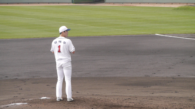 이영하 선수가 끝나자 바로 함덕주 선수가 라이브 피칭을 이어갔습니다. 이 날의 라이브 피칭은 함덕주 선수로 끝났는데요... 라이브 피칭 후에는 귀국 전날이라 연습은 여기까지고 다들 식사 겸 오후 휴식을 위해 다시 버스를 타고 돌아가는데, 이동 직전에 선수들에게 인사도 하고 싸인도 부탁하고 해서 그나마 이번 여행의 숨은 목적을 달성할 수 있었네요.