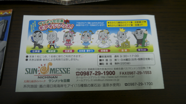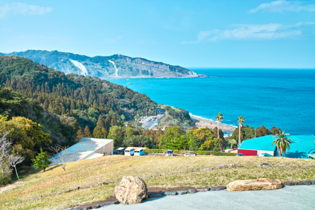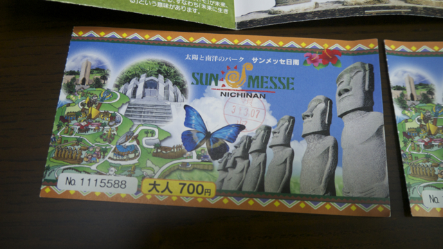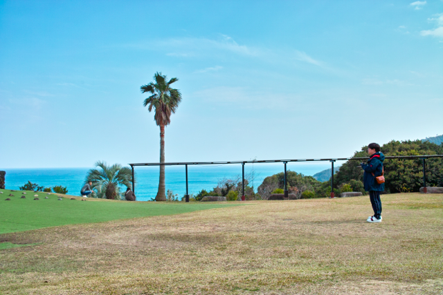 도깨비 빨래판들을 뒤로 하고 얼마 가지 않아 오늘의 두번째 목적지인 선멧세 니치난(サンメッセ日南)에 도착. 니치난(日南)시에 해가 잘 드는 해안가 언덕 공원이라고 보시면 될 거 같은데요, 해안도로를 달리다가 선멧세 니치난 표시를 보고 길에서 벗어나서 입구 도로를 꾸불꾸불 돌아 올라가면 입장권을 파는 게이트가 나오구요. 거기서 티켓을 구매하면, 주차장으로 안내를 해줘서 거기에 차를 일단 세웠네요.