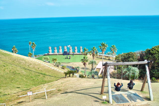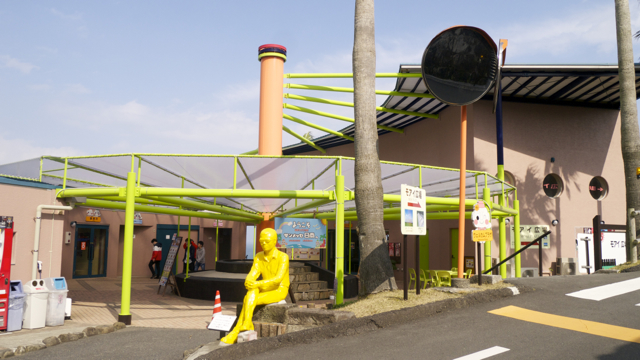 도깨비 빨래판들을 뒤로 하고 얼마 가지 않아 오늘의 두번째 목적지인 선멧세 니치난(サンメッセ日南)에 도착. 니치난(日南)시에 해가 잘 드는 해안가 언덕 공원이라고 보시면 될 거 같은데요, 해안도로를 달리다가 선멧세 니치난 표시를 보고 길에서 벗어나서 입구 도로를 꾸불꾸불 돌아 올라가면 입장권을 파는 게이트가 나오구요. 거기서 티켓을 구매하면, 주차장으로 안내를 해줘서 거기에 차를 일단 세웠네요.