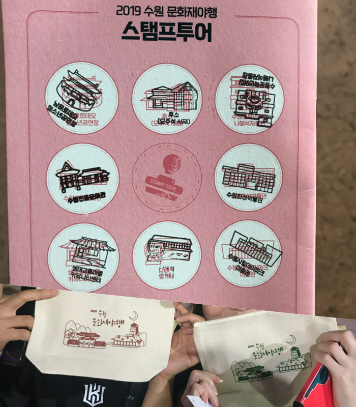 아, 그리고 수원야행의 각각 장소에서는 스탬프를 받는 곳이 있었는데, 여기 도장을 다 받으면 기념 파우치를 주더군요. 그것까지 Get 하고는, 좀 더 일찍 알았더라면 더 재밌게 즐겼었을, 그렇지만 충분히 즐거웠던 수원야행 문화제를 마무리했네요.