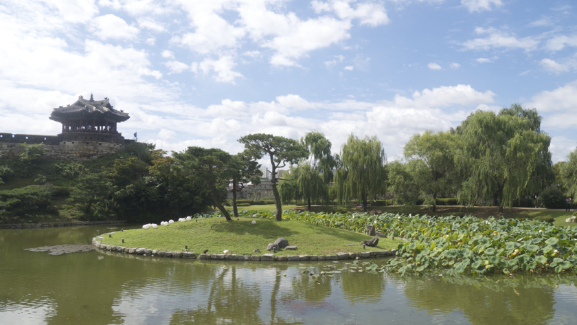 태풍이 지나간 뒤라 가을 하늘은 정말 맑았고, 화성행궁광장으로 가는 길에 만난 방화수류정/동북각루와 용연은 아직 이른 아침이라 사람들이 오진 않았지만, 그 푸르름의 끝자락을 보여주더군요.