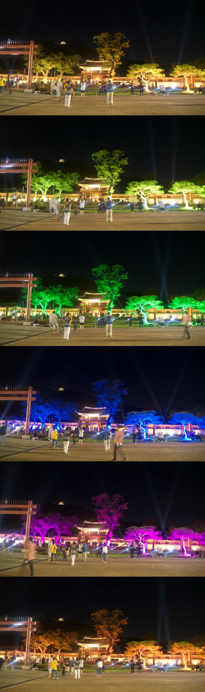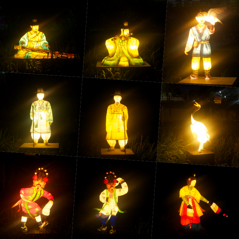 한창 더위 때는 없더니, 밤이 되어 선선해지니 이제 활동하기 시작한 모기 떼들이 천변에 노니는지라, 헌혈을 좀 하긴 했지만 그래도 꽤 볼만했었네요. 천변 등불축제를 보고 나서는 다시 화성행궁광장으로 이동했습니다. 근데, 저녁 시간에는 사전 예약한 경우에만 입장이 가능해서 그냥 그 앞 광장에서 진행 중인 행사들을 좀 구경하다 행리단길로 이동했습니다.