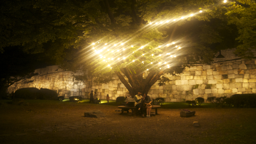 한창 더위 때는 없더니, 밤이 되어 선선해지니 이제 활동하기 시작한 모기 떼들이 천변에 노니는지라, 헌혈을 좀 하긴 했지만 그래도 꽤 볼만했었네요. 천변 등불축제를 보고 나서는 다시 화성행궁광장으로 이동했습니다. 근데, 저녁 시간에는 사전 예약한 경우에만 입장이 가능해서 그냥 그 앞 광장에서 진행 중인 행사들을 좀 구경하다 행리단길로 이동했습니다.