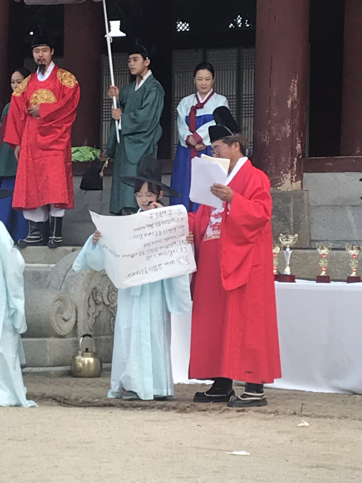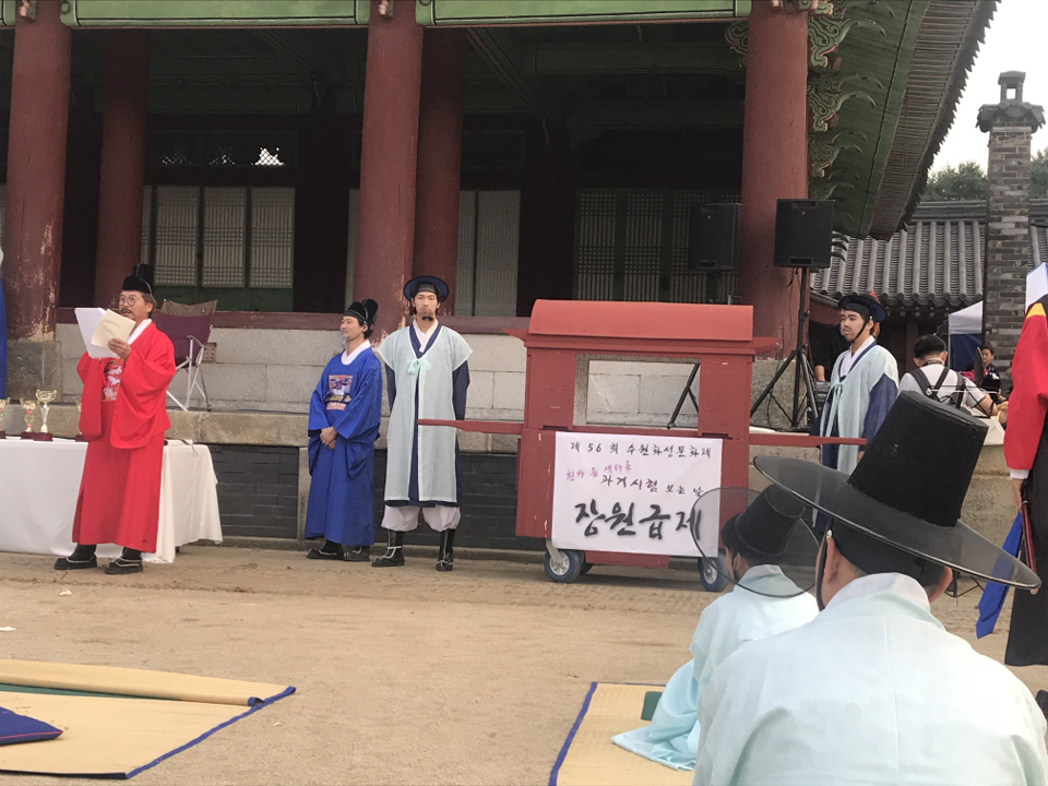 대충 정리하면, 과거 시험 보러 들어가서 각자 시제에 따른 정답이나 글을 써서 내는 걸로 과거 시험 자체는 운영이 되지만, 그거만 하면 재미가 없으니, 과거 시험 보면서 일어날만한 일들을 유생들 중에 일부 전문 연기자들이 포함되어서는 그 분들이 상황극을 펼친다고 하더군요. 그러니까 놀라지 말라는...