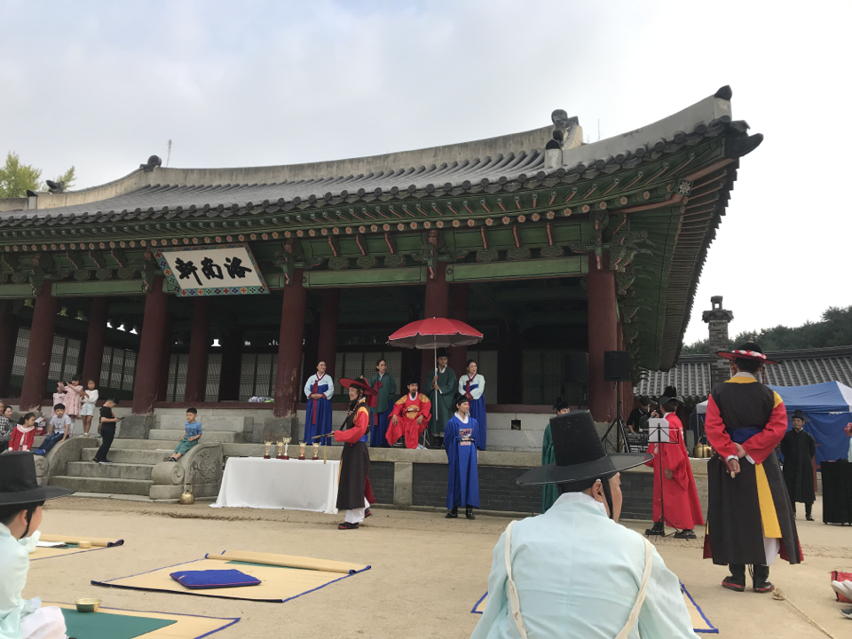 3일째는 토요일인지라 늦잠을 좀 잔 다음에, 과거시험을 보러 화성행궁으로 이동했습니다. 신풍루를 지나서 봉수당을 끼고는 낙남헌으로 바로 갔는데, Staff 분들이 마침 준비를 시작하더군요. 시험을 보러 오는 유생들은 아직이더군요. 일부 연기자 분들이 있지만 대부분 저처럼 신청하신 분들인데 그닥 신청이 없었는지 사람이 많지는 않았습니다.