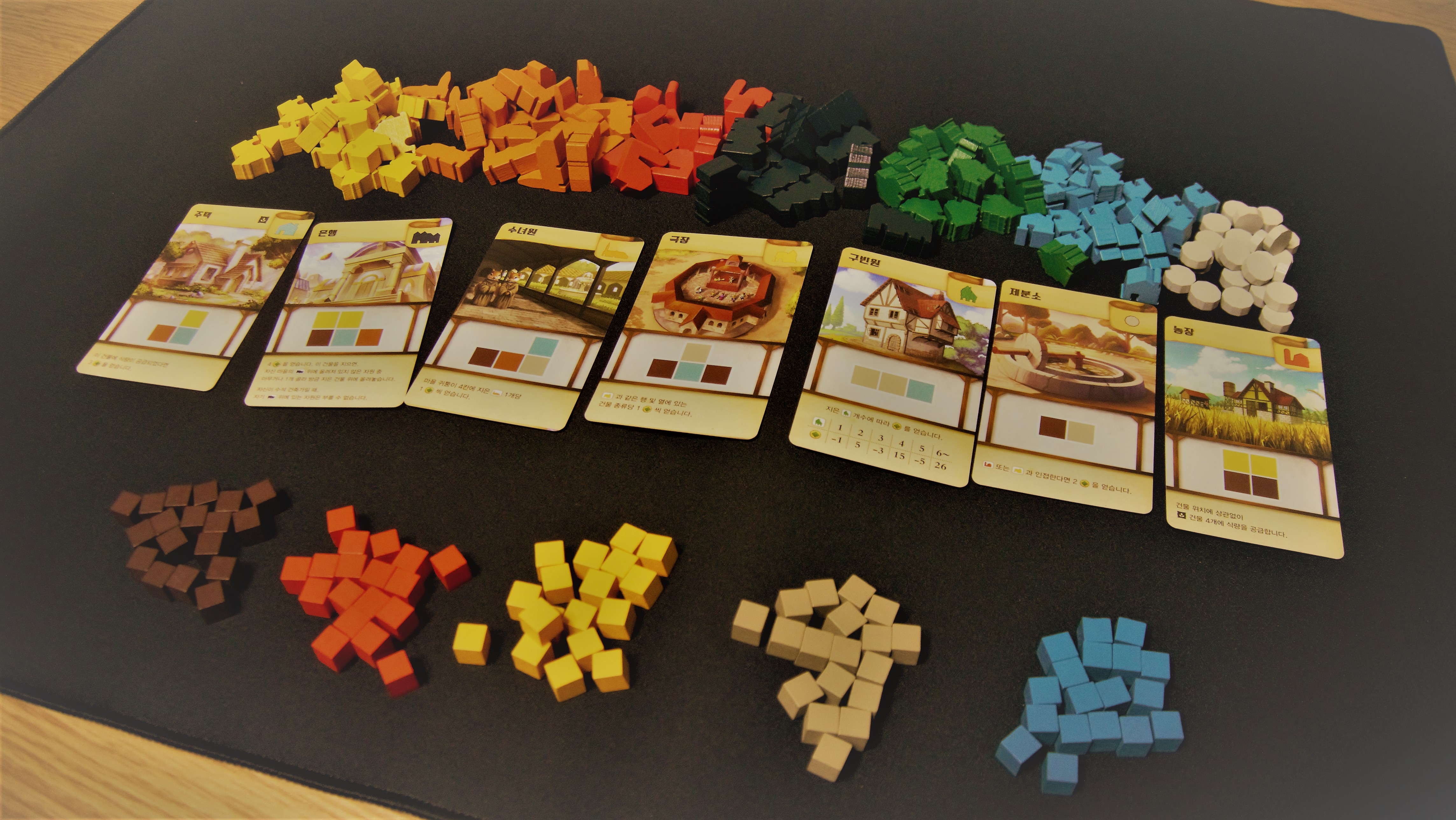기본적인 내용은 각 플레이어는 시장 또는 촌장이 되어서 게임이 끝날 때 가장 점수를 많이 획득할 수 있도록 도시/마을을을 건설하는 내용입니다.