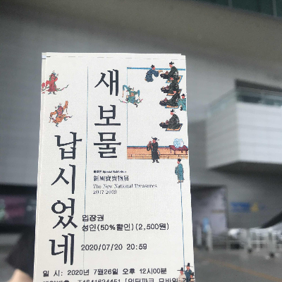 그렇게 예매한 관람일이 바로 지난 일요일(7/25). 사회적 거리두기 때문에 입장 시간도 별도로 두고 시간별 입장 인원수도 제한을 두었고, 그래서 예약한 시간인 12시에 맞춰서 집을 나섰고 중간에 이른 점심을 먹고, 드디어 국립중앙박물관에 도착. 주차장은 지하 주차장이었고, 기획전시실이 있는 건물에서 입장권을 찾고는, 거리두기에 맞춰 줄을 서고는 체온체크와 손소독을 하고 방명록 작성하고는 드디어 입장!!!!