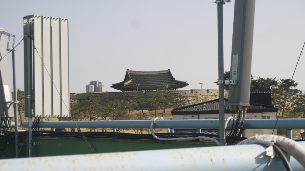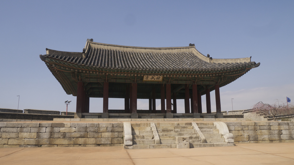 이번 글은 성곽을 걷지 않아도 늘 옥상에서 바라 보는 동장대(aka 연무대)입니다. 아래 사진은 창룡문 쪽에서 바라본 동장대(뒤쪽 건축물)과 그 앞의 연무대 관광안내소 및 국궁체험장의 사진입니다. 넓게 트여진 공간이기 때문에 실제 군사 지휘를 저 동장대에서 하다 보니, 대한민국 남자들이라면 꿈속에서도 듣기 싫은 그 이름 연무대(鍊武臺)가 이 동장대의 또 다른 이름입니다. 말 그대로 무예를 연마하는 곳이라는 거죠.