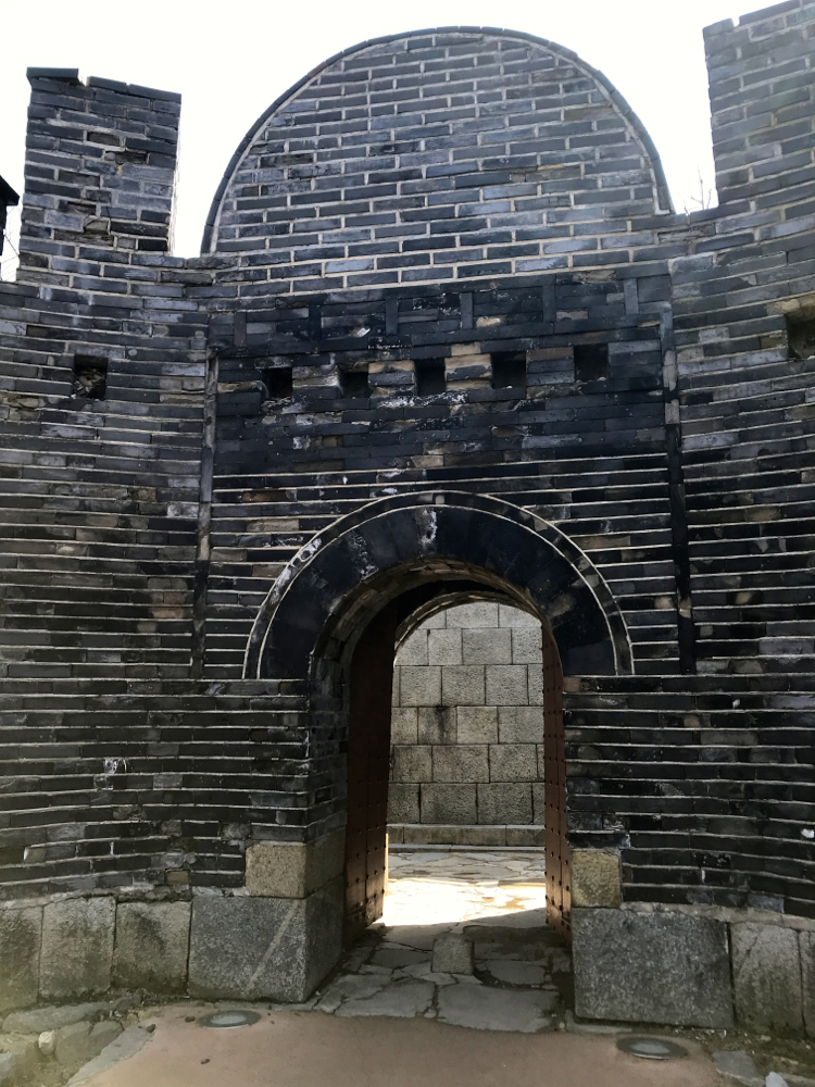 계단을 내려가면 그제서야 사람 두 명 정도, 말 탄 사람이 지나갈 높이의 문이 보입니다. 문을 나가 보면 바깥쪽은 예전 포화를 맞아서인지 불 탄 자국이 남아 있더군요.