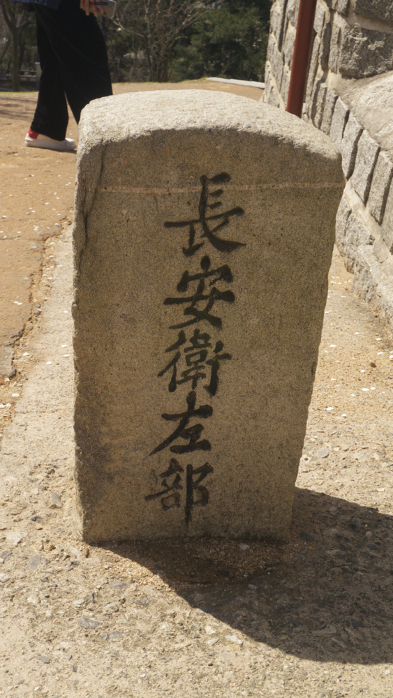 각건대를 지나서 이제 내리막을 내려가다 보면 아래와 같은 비석 하나가 있는데, 양 옆으로 다른 글이 적혀 있습니다. 해석하면 장안수비대 좌군과 장안수비대 우군이라는 뜻인데요, 바로 각 부대 별로 방어하는 영역을 구분하는 표식입니다. 성곽 길을 걷다 보면 이런 표식이 몇 개 더 발견하실 수 있습니다.