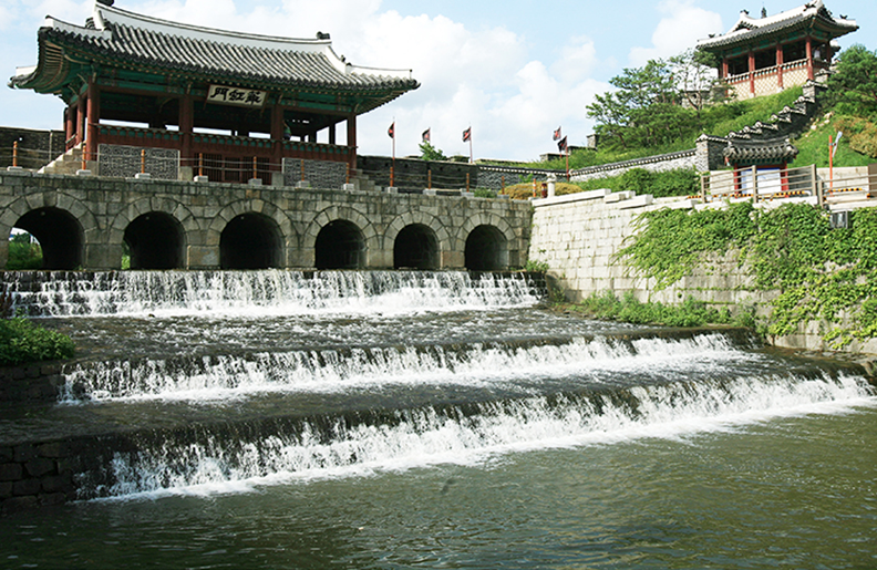 요즘으로 치면 신도시에 해당하는 수원화성을 만들면서, 이 신도시의 물 공급원, aka 수원(^^)으로 수원천을 만들었고 이를 수원성 내부를 가로질러 북에서 남으로 흘러가게 했습니다. 그래서 수원성에는 수원천이 지나가는 물길 위에 2개의 수문이 존재하는데, 그 중 하나인 북쪽에 자리한다 해서 북수문(北水門)이 바로 이 글의 주인공인데요.