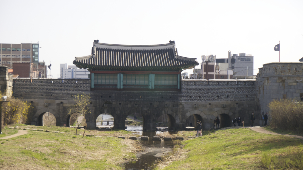 요즘으로 치면 신도시에 해당하는 수원화성을 만들면서, 이 신도시의 물 공급원, aka 수원(^^)으로 수원천을 만들었고 이를 수원성 내부를 가로질러 북에서 남으로 흘러가게 했습니다. 그래서 수원성에는 수원천이 지나가는 물길 위에 2개의 수문이 존재하는데, 그 중 하나인 북쪽에 자리한다 해서 북수문(北水門)이 바로 이 글의 주인공인데요.