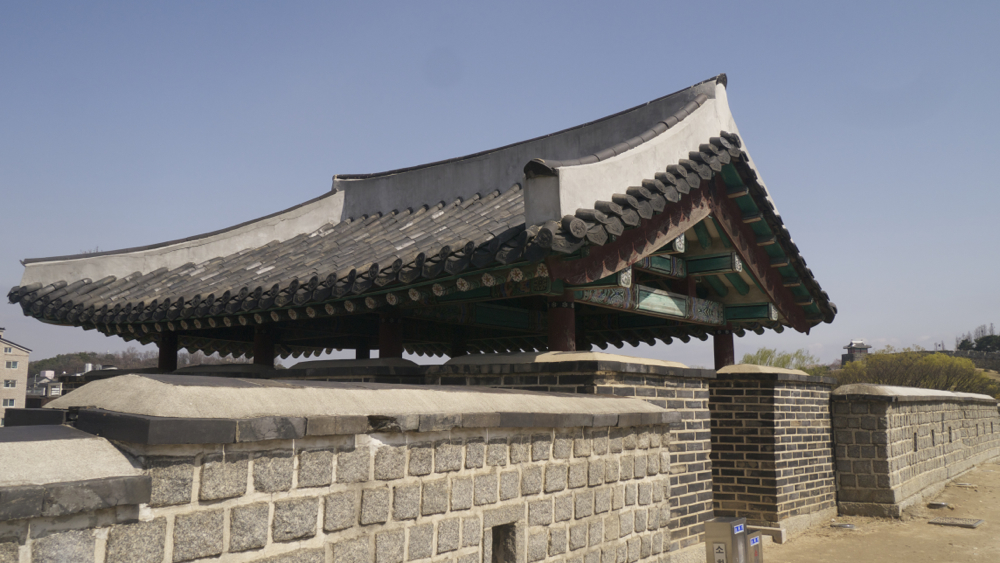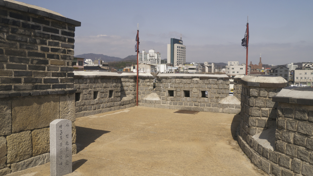 북수문/화홍문에서 장안문으로 가는 길은 평지에 세워둔 성곽이다 보니, 그나마 언덕에 건설된 창룡문-북수문까지 설치된 망루/포루 수에 비해서 거의 없다시피 합니다. 경계를 하는 의미에서는 평지다 보니 장안문까지는 망루 및 군사적 의미에서는 건축물이 단 하나, 이 북동포루(北東砲樓)만 존재합니다.