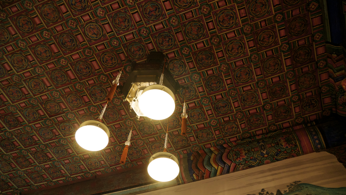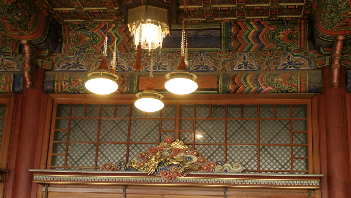 어찌 되었든 'ㅁ'자의 안쪽이 되는 접견실에 도착하니 이 곳은 지난 복원의 결과물이 얼마나 대단하고 훌륭하고 멋졌는지... 같이 동행했던 다른 직원 분이 가이드 분의 요청에 따라 (촛불도 아니고) 전등을 켜주니까.... 세상에 조선 궁궐에 촛불/등불/청사초롱이 아니고 전등입니다, 전등! 이 켜지고 샹들리에가 존재하니 이건 뭐 정말... 세상에서 단 하나 존재하는 유일한 공간에 온 느낌에 가슴이 벅차고 감동이!!!