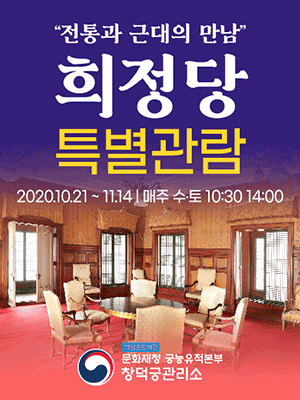올해로 2년째가 된다고 하는 창덕궁(昌德宮) 희정당(熙政堂) 특별관람 행사. 역사학자가 어린 시절 꿈이고, 조선왕조실록을 20번 정도 초등학교 때 정독한 주인장이지만, 그렇다고 우리 집도 아닌 조선시대의 궁궐 내의 각 전각이 뭐가 있고 어떤 건지 어찌 다 알겠습니까. 경회루, 근정전, 후원 등등 좀 유명한 곳만 이름을 들으면 건물의 대충의 모양까지 떠올리지만, 나머지는 뭐... 또 워낙 교과서에서는 경복궁에 강세를 줘서 서술되어 있다 보니 창덕궁의 전각은 아는 바가 없었는데요... 최근 수원 화성을 자주 가면서 마나느님의 흥미도 끌기 시작한 우리 문화재 보러 다니는 여가 활용 덕에 '문화재청'에서 직접 진행하신다는 창덕궁의 '희정당 특별관람' 행사 소식에 시간 맞춰 각 잡고 앉아 있다가 어려운 예매 전쟁에서 살아남아 겨우겨우 이 행사에 참여할 수 있었습니다. 이번에는 수,토요일에 단 두 번, 한 번의 행사 진행에 딱 10명의 관람객이 들어가서 봤으니, 총 8일 16번 160명의 행운아들이 희정당 내부를 볼 수 있었네요.