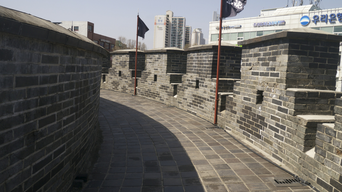 이제 그럼 또 평지 성곽을 죽 걸어서 화서문을 향해 가 보시죠.