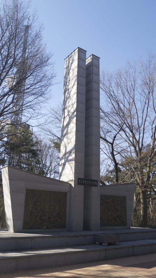 성곽 옆길이 아니라 아래쪽 등산로를 걷다 보니 서삼치는 위처럼 그냥 초입만 찍었네요. ㅎㅎㅎㅎ 그렇게 또 발걸음을 재촉하면, 화성성곽에서 유일하게 갈림길이 나오는 서남암문과 그 앞의 2개의 기념탑을 만나게 됩니다. 대한독립기념비와 3.1운동기념탑이 세워져 있구요.... 팔달산 자락에 수원이 다 내려다 보이는 곳에 이런 기념탑을 세워놓다니 지나가면서 이를 기리게 해줄 수 있게 해서 나름 의미가 있었습니다.