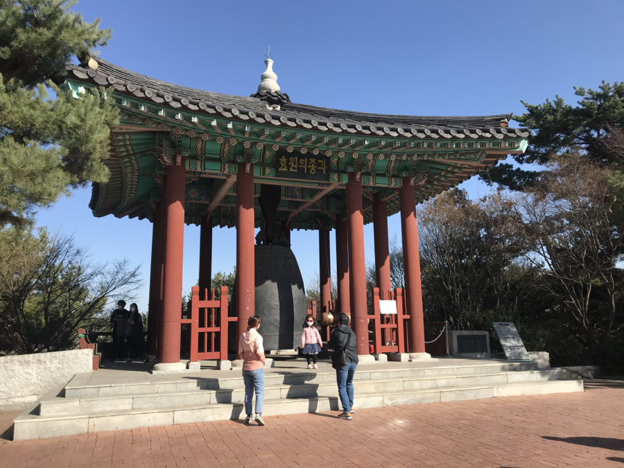 서암문에서 멀지 않은 곳에는 원래 성곽 구조물은 아니지만 '효원의 종'이라고 하는 종각이 있습니다. 아버지 사도세자를 생각하는 정조의 효를 기리기 위해 만들어진 종으로 시민의 의견을 모아서 붙인 이름이라고 하더군요. 총 3번 타종하는데, 한 번은 부모님의 은혜, 한 번은 가족의 행복, 마지막은 자기 자신을 위해 타종한다고 하네요. 타종을 할 수 있는지 어떤지 알지 못해서 그냥 지나쳤네요. ㅎㅎㅎ