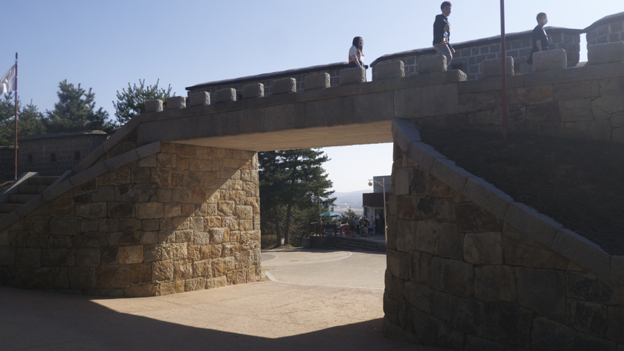 서포루를 지나 내려가면 이제 좀 서서히 내려가는 길을 따라가게 되는데, 가다 보면 성벽을 일부 뚫어서 성곽 밖의 팔달공원과 연결되는 통로를 만나게 됩니다. 이 길을 따라 화서동 쪽으로 오르고 내려가는 등산객, 관광객들을 만날 수 있고, 또 관광안내소랑 매점이 있어서 잠시 갈증과 허기를 달랠 수도 있습니다.