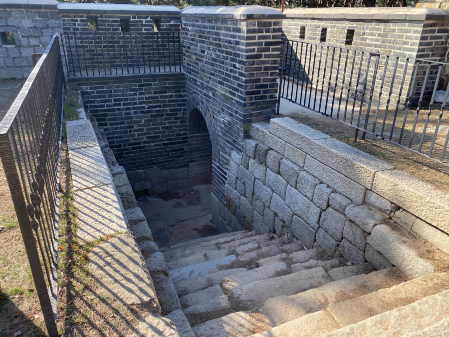 팔달산 정상에 있는 서장대에서 산자락을 따라 내려가기 시작하면 바로 서암문(西暗門)을 만나게 됩니다. 적들 몰래 물자들을 들여보내거나 병사를 내보내는 출입구인 암문(西暗門)인데, 화성 성곽의 암문 중에서도 가장 눈에 띄지 않는 암문이라고 하는데, 바깥쪽에서 보이는 모습은 이곳을 들러보시길 바랍니다. 제가 갔던 날은 서암문 옆에 중딩 언니들이 주위에 둘러앉아 재잘재잘 얘기 나누고 있더군요.