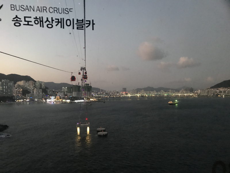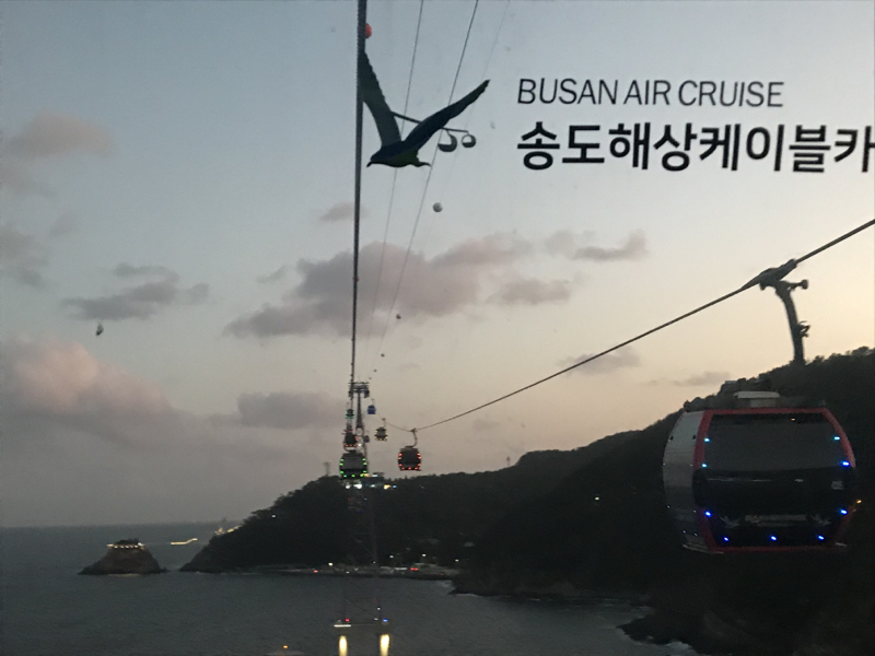 맛있게 저녁과 반주를 마치고는 송도 해수욕장 위로 지나가는 해상케이블카를 타고 건너편 암남공원/송도스카이파크에 갔다 왔습니다. 통영에서도 케이블카를 타긴 했지만, 이번에 또 바다 위로 지나가는 케이블카인데... 조오끔 또 무섭긴 하더군요.