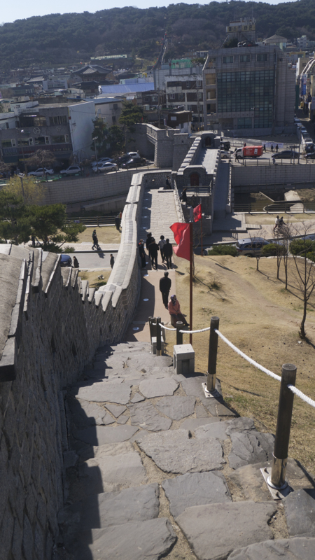 남수문 동쪽 끝자락의 계단을 타고 올라가면 성벽이 언덕을 타고 올라갑니다.