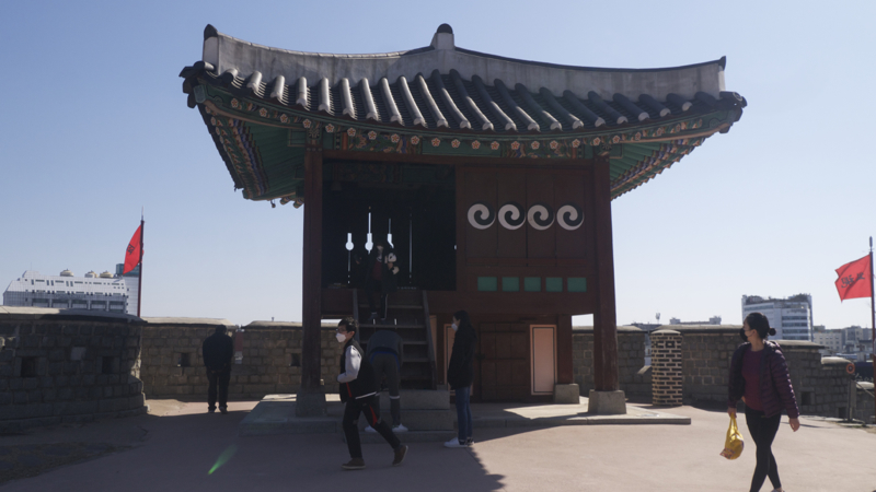 위치로 보면 화성 성곽에서 팔달산을 제외하고 나머지 부분에서 가장 남쪽의 시설물이 되는 동남각루(東南角樓)입니다. 언덕 위다 보니 다른 시설물보다도 더 높은 곳에 있는 것처럼 성외곽에서는 보입니다.