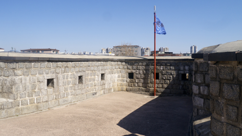 동이치를 지나 좀 가면 화포(대포)를 쏠 수 있는 동포루(東砲樓)가 나옵니다. 이 대포를 쏠 수 있는 포루들은 대부분 잠겨 있어서, 실제로 포를 보려면 장안문의 좌우에 있는 북동적대나 북서적대를 가야 하는 게 좀 아쉽네요.