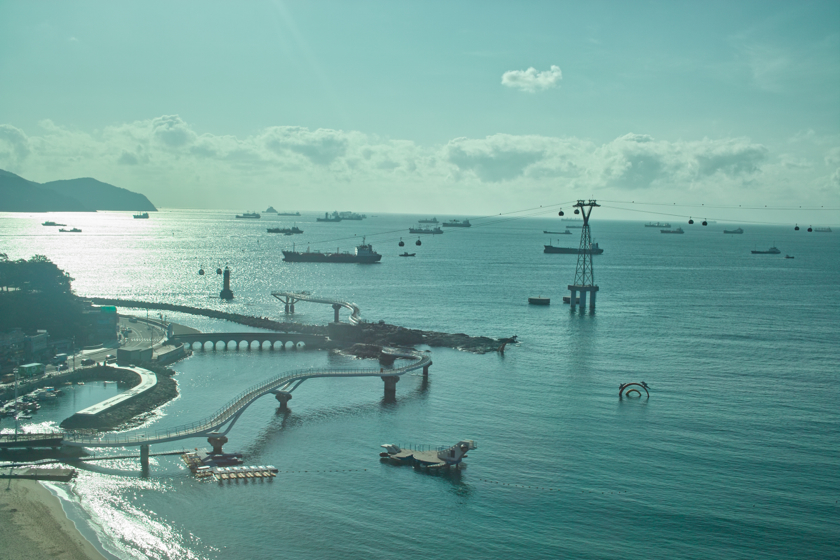 높은 층의 객실에서 통유리로 된 창으로 내려다 보니 초가을바다가 참 이쁘더군요.
