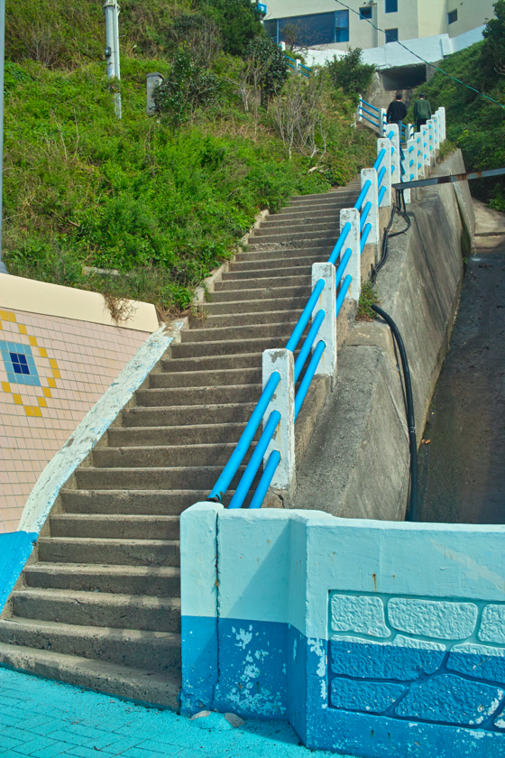 여행의 마지막 날, 숙소를 나와서는 요즘 여러 영화와 여러 부산 출신 연예인의 추천으로 핫플레이스로 뜬 '흰여울 문화마을'로 향했습니다. 대중교통으로 가면 주차 걱정이 없어 더 편한 곳이지만, 차를 가지고 움직여야 했기 때문에 일단 그 근처에 주차를 하고, 마을이 시작되는 입구에서부터 천천히 걸으면서, 땀도 흘려가면서 영도 앞바다와 흰여울마을을 구경했네요.