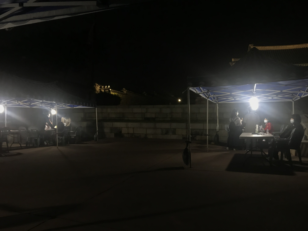 "낭만소풍"은 봄, 가을의 한 4~6주간 금요일 야간과 토요일 주간으로 해서 2~4인 정도의 인원이 한 팀이 되어서 동장대부터 시작해서 건너편의 창룡문 들렀다가 다시 동북공심돈과 동장대를 지나 방화수류정까지 걸으면서 안내 해주시는 가이드 분과 함께 화성행궁의 이야기를 들으며 장소 별로 이런 저런 이벤트를 하는 행사인데요.