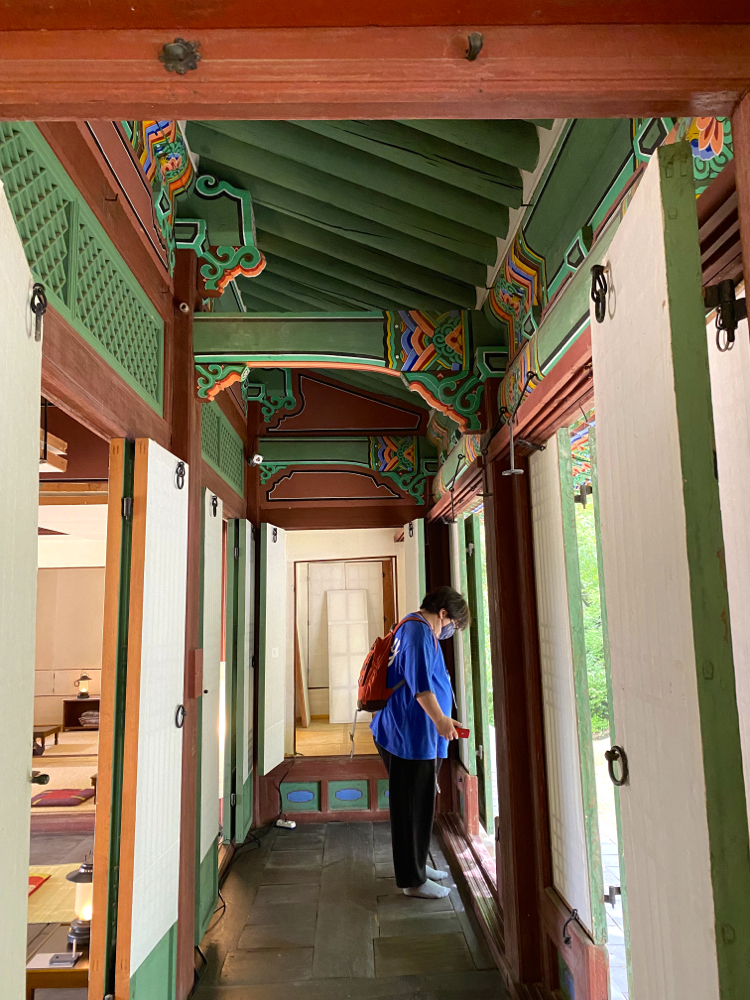 어쨌든 독서 행사의 전각 중 하나인 서향각(書香閣)으로 들어가보니, 이미 자리를 옮기신 분들이 대부분이고, 거의 비어 있어서 오히려 한적하고 차붓하게 즐길 수 있었습니다. 정조께서 주합루 권역을 당시 규장각 일대로 새로이 건립하면서 지은 건물 중 하나로 말 그대로 책 향기가 나는 곳이라는 뜻 입니다. 아래 사진처럼 6~7칸의 전각이었고, 가운데는 출입할 수 있는 공간이지만, 양쪽 끝은 그 앞에, 요즘 말로 발코니/베란다 같은 곳이 있어서 그 앞으로 나가서 주위 경치를 즐길 수 있어서 좋았습니다.