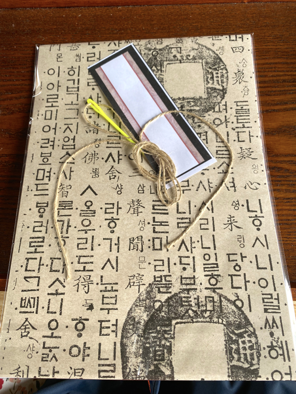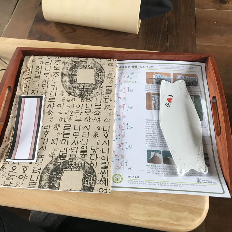 자리를 잡고, '옛 도서 만들기' 세트를 하나 받아서는 앉아서 기다리니, 어느 정도 참여자들이 모이게 되어서 바로 시작되었다. 옛날 책들이 어떻게 묶음을 해서 만들어졌는지를 직접 체험하는 행사였는데, 오래 걸리지도 않고 이렇게 나만의 옛 도서를 만드는 것도 나름 신선한 경험이었다.