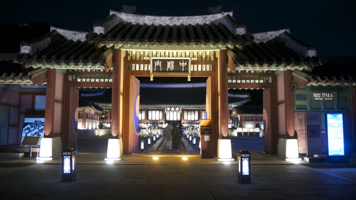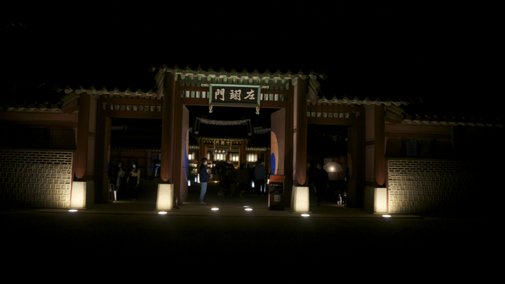 그 등을 보고는 행궁 안으로 들어갔습니다. 야행 때마다 만나는 달빛정담 조형물에서 사진을 찍고는 좌익문, 중양문 등을 지나면서 야간 개장한 행궁 안을 오랜만에 돌아봤습니다.