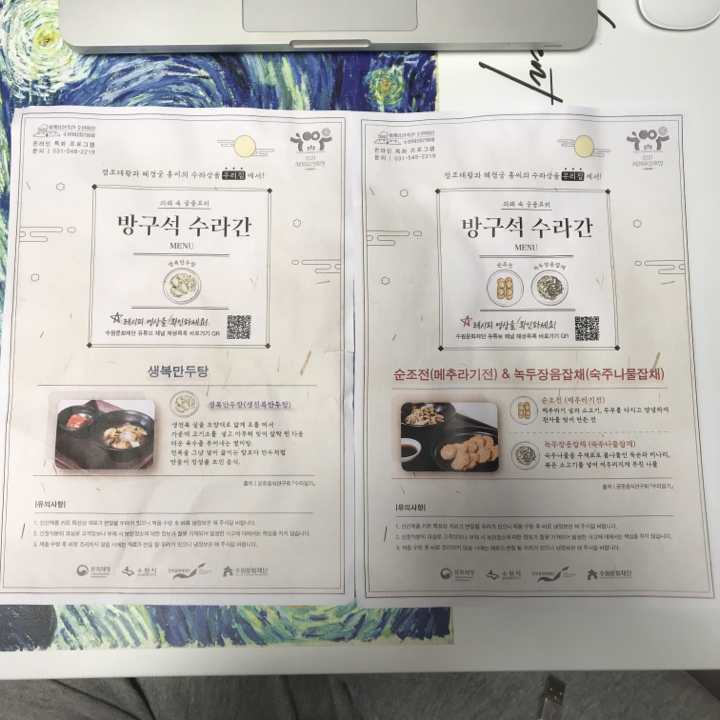 무려 1년이 지나서 이 글을 마무리 하네요. 작년에 정말 열심히 클릭해서 예약하고는 키트 받아서는 마나느님을 괴롭혀서 영상 보면서 만들어 먹었었는데... 1년이 지나 "2022년 힐링폴링 수원화성"에서 또 "방구석 수라간"을 하게 되어서, 혹시나 도움이 될까 해서 글을 급마무리 합니다.