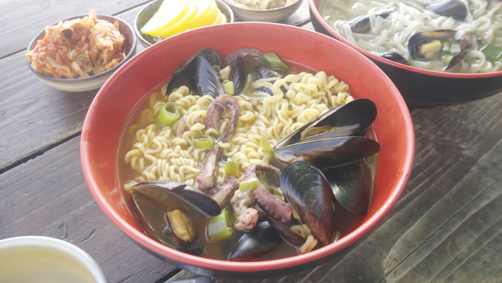 오픈 런에 맞춰서 가려고 했는데, 아래처럼 주위 경치를 즐기며 천천히 달리다 보니 "섶섬할망카페"라는 해물라면/보말칼국수 집으로 찾아갔는데, 이미 손님이 가득 차서, 대기를 탔습니다. 어디 다른 데 가기도 그렇고 해서 주변 바다 구경하면서 한 1~20분 기다렸다 들어갔는데... 할머니와 직원 분 단 두 분이다 보니, 아무래도 음식 나오는 것도 그렇고 서비스도 기대할만한 수준은 아니었습니다. 다행히 저희는 아니었는데, 다른 분들(이 날 말고 다녀온 분들 후기)은 불편하거나 비위생적인 상황을 겪었다는데... 저희는 바로 옆에 하수처리장인가 싶은 건물이 있는 게 좀 아닌 것 같은 거 빼곤 그냥 무난하게 먹고 나왔었네요.