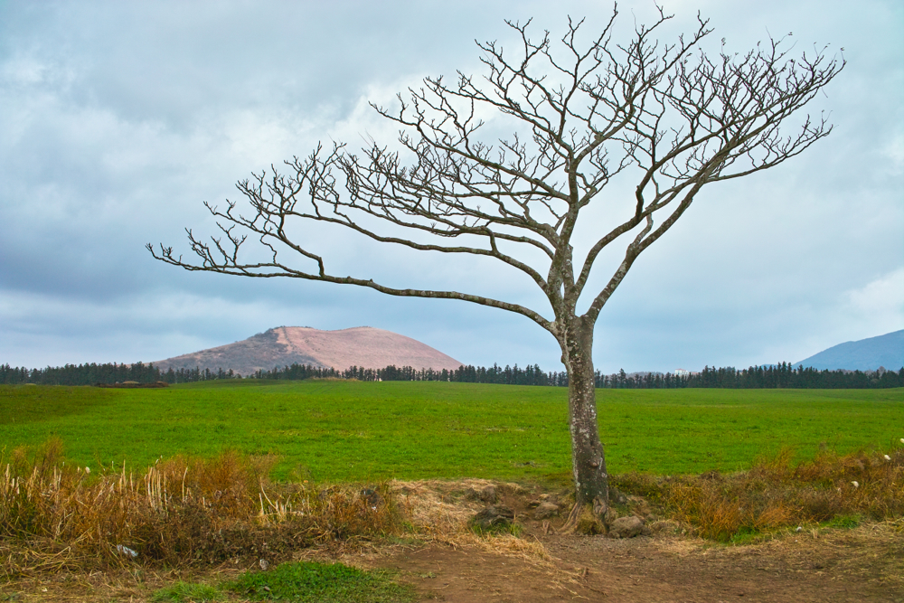 방주교회를 보고는 원래는 숙소 체크인을 하려 했지만, 근처에 이것저것 볼 것이 있어서 하나씩 보고 들어가기로 결정하고는 근처를 차로 돌기 시작했습니다. 가장 먼저 간 곳은 인생샷 장소로 유명한 새별오름 근처 나홀로나무였습니다. 새별오름 근처이긴 하지만, 새별오름이 있는 길로 가면 안 되고 좀 더 서남쪽으로 내려와 그리스신화박물관 있는 길로 들어와서 서쪽으로 조금만 가다 보면 차들이 갓길 주차하고 있는 장소가 나옵니다. 차를 내려놓고 새별오름 쪽을 바라 보면, '아, 저 나무' 하는 나무가 바로 보입니다. (^^)