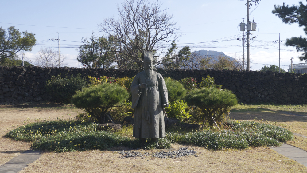 추사 김정희 선생의 작품을 전시해 둔 제주추사관이 새로이 만들어져 있고, 그 뒤로는 추사가 유배 생활을 했던 초가집과 관련 재현 모형들이 있습니다. 그리고는 추사 관련 판넬 전시품들과 추사 동상이 있더군요.