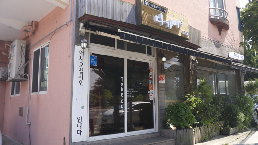 지난 두 번은 계속 해서 11월, 12월 늦가을, 초겨울에 동백꽃 피는 시절에 왔는데, 이번 여행은 유채꽃을 보기 위해 이른 봄....이라기 보다는 봄에 오게 되었는데요.... 도착 시간이 점심 때 쯤이라, 이번에는 식당을 찾아가서 먹는 게 아니라, 나름 유명하다는 김밥집에 들러서 Takeout으로 다음 목적지로 이동하면서 식사를 하기로 했습니다. 그래서 공항에서 렌트한 차량을 찾은 이후에 바로 "다가미"라고 하는 제주 시내 김밥집에서 김밥을 포장해서 나왔습니다. 가게 주위에는 주차 공간이 없고 그냥 길가에 둬야 해서 조금 불안했지만, 다행히 식사 시간을 피하고 교통량도 적을 때여서 주문하고 챙겨 나오는데 까지 큰 문제는 없었습니다.