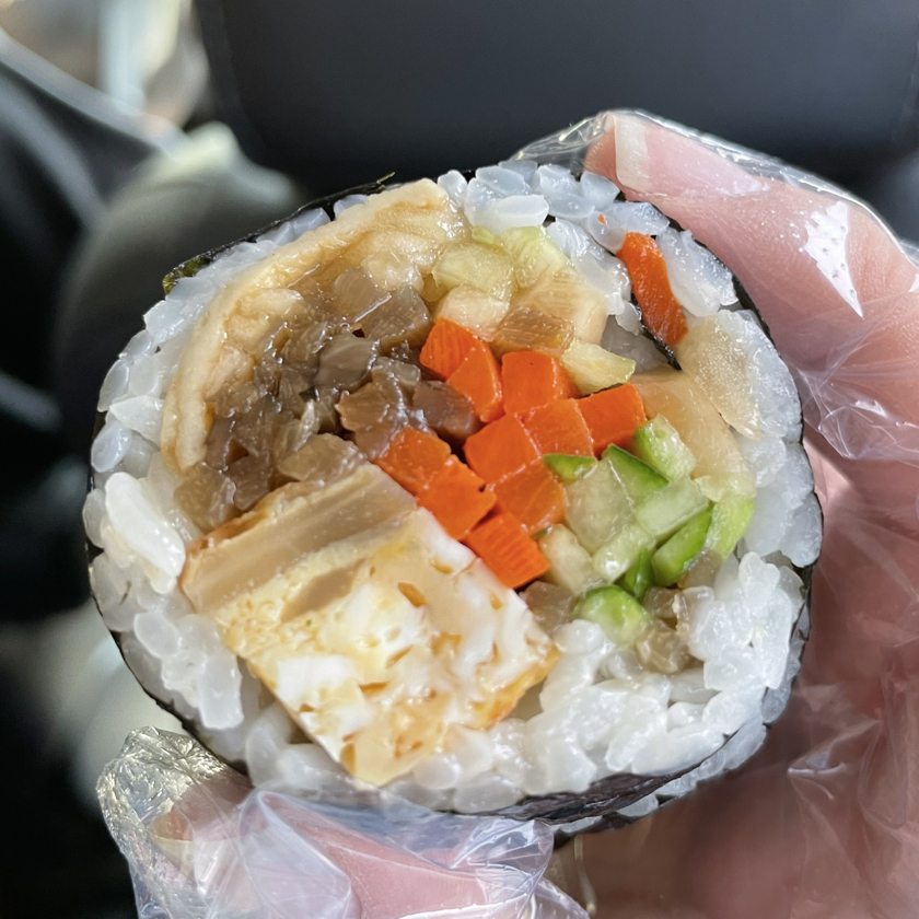 기본 김밥인 다가미김밥과 참치로얄김밥, 매운멸치쌈김밥 그리고 화우쌈김밥을 주문했는데, 일단 김밥 크기가 왠만한 걸 한 입에 넣는 저도 약간 부담스러울 정도로 큰 크기였는데, 사진처럼 속도 꽉 차 있어서 간단히 한 끼 채우기에는 충분하더군요. 아 맛도 있었구요. 어쨌든 그렇게 도착과 함께 식사를 이동하면서 해결하고는 사실상 첫 목적지를 향해 이동했습니다.