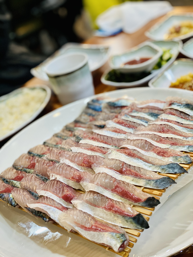 나름 꽤나 긴 기다림 끝에 차례가 되어서 들어가서는 묻지도 따지지도 않고, 이 집의 대표음식인 고등어회를 시켰습니다. 그리고 무슨 탕 같은 것도 시켰는데 이름이 생각이 안 나네요. 어쨌든, 고등어회는 잘 처리하지 않으면 되게 비린 게 문제인데, 나름 이 집은 깔끔하게 잘 처리해서 왜 사람들이 많이 오나 알겠더군요. 어렸을 때는 그닥 비싸지 않았던 고등어였는데 어느샌가 진짜 가격이 높은, 높을 고의 고등어가 되어버렸네요.