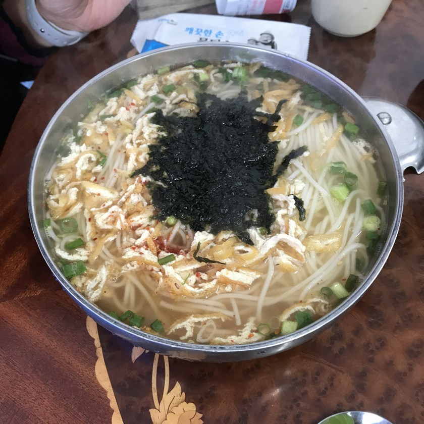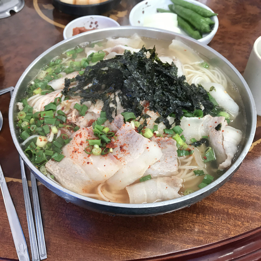 제주여행 3일차 아침, 어제의 고기 파티와 알콜 드링킹으로 속이 좀 부담스럽기도 하고... 또 제주도 왔는데 고기국수 안 먹고 가는 건 아닌 거 같아서, 아침 일찍 여는 고기국수 말고 멸치국소도 하는 파도식당으로 갔습니다. 오늘 일정이 남원, 표선쪽이기도 해서 제주시 서쪽 숙소에서 그리로 나가는 길에 있는 동문재래시장 끝자락에 있는 이 식당이 동선에 맞기도 했구요.