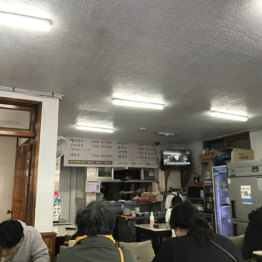 아래 사진에 보시듯이 다른 뭐, 3대 고기국수 집에 비하면 조그맣고 동네식당 느낌인데, 반찬도 많이 나오는 거 아니고 국수용으로 딱 그 정도인 반찬인데... 고기국수랑 멸치국수가 양이 참 많더군요. 건더기도 넉넉하고....