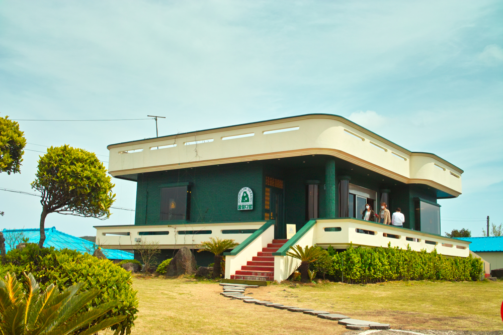 오드랑 베이커리에서 이동하며 심심하지 않게 먹고 갈 걸 산 후 송당으로 이동했습니다. 요즘 여기에 옛 가옥을 고쳐서 만든 트렌디한 카페들이 많다고 해서, 이번 여행의 또 다른 목적 중 하나인 카페 투어 중 하나로 해서 목적지를 하나 정해 놓고 이동했습니다. 다행히 카페 옆에 주차장이 있어서 쉽게 차를 세우고는 카페를 바라 보니, 전형적인 양옥집을 꾸며 놓은 카페였습니다. 이름은 풍림다방 송당점.