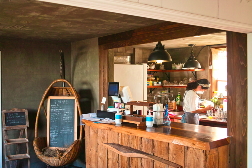 별방진에서 다시 일주도로와 해안도로를 따라 서쪽으로 제주시내를 향해 가다가, 해안도로 변에 있는 이런저런 카페를 보던 중에 목이 마르기도 하고, 배도 고프고 해서 구좌상회작업실이라는 카페를 찾아갔습니다. 월정리 바다가 보이는 곳은 아니지만, 월정리 안쪽 마을에 나름 옛 가옥을 개조해서 만들었는데, 가게가 꽤 매력적이었습니다. 당근 케이크가 시그니쳐 메뉴라고 해서 먹었는데, 맛있더군요.