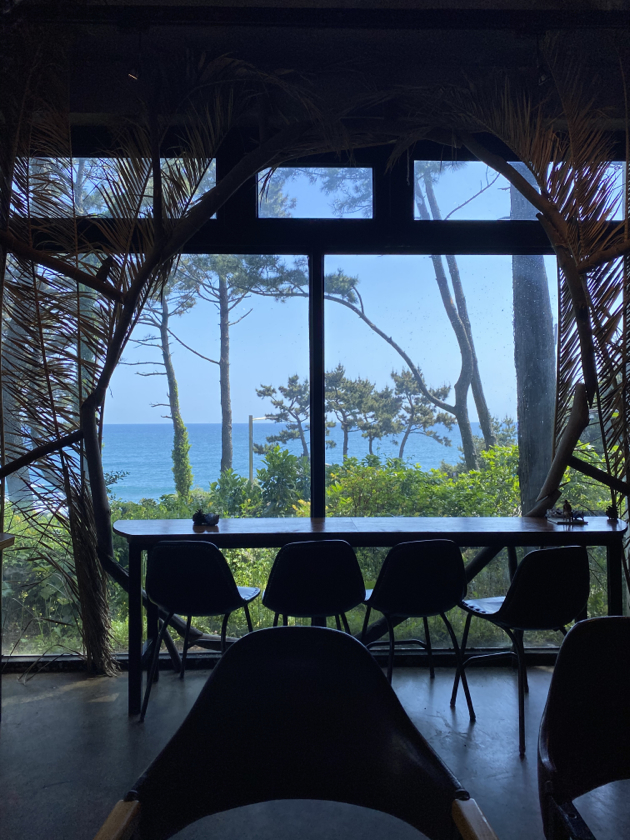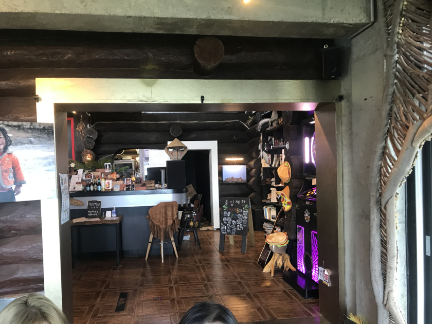 아줄레주에서 시간을 보내고, 원래는 예정되었던 축구 경기를 보려 가려했는데, 너무 시간이 많이 남아서, 서귀포로 들어오는 길에 남원에서 늦은 점심으로 해서 수제 버거를 먹으러 로빙화라는 카페 겸 레스토랑에 들렀습니다. 야외에는 커다란 견공들이 지키고 있던데, 오션 뷰에 내부도 뭔가 여행지 느낌으로 해 놔서 독특했습니다.