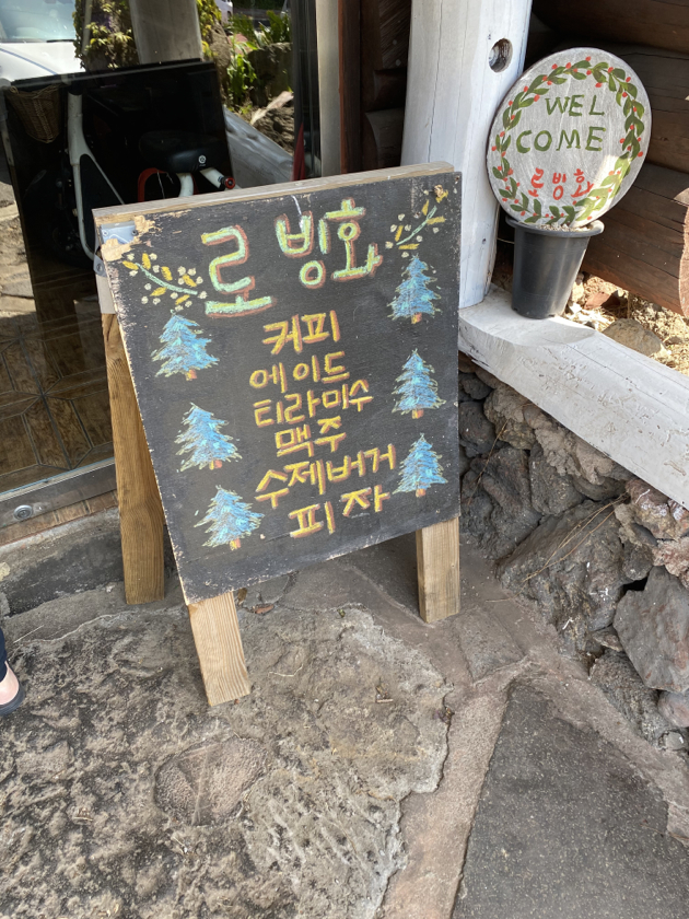 아줄레주에서 시간을 보내고, 원래는 예정되었던 축구 경기를 보려 가려했는데, 너무 시간이 많이 남아서, 서귀포로 들어오는 길에 남원에서 늦은 점심으로 해서 수제 버거를 먹으러 로빙화라는 카페 겸 레스토랑에 들렀습니다. 야외에는 커다란 견공들이 지키고 있던데, 오션 뷰에 내부도 뭔가 여행지 느낌으로 해 놔서 독특했습니다.